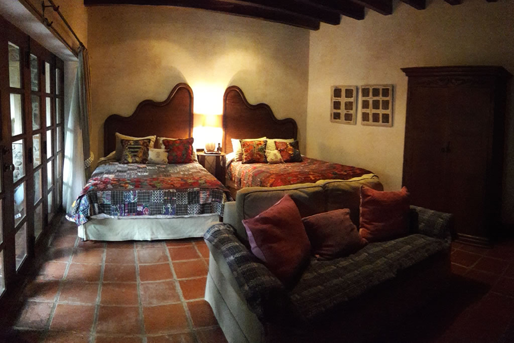 This beautiful boutique hotel has 5 unique suites (bedroom, sitting room, hand tiled and spacious bathrooms, some with kitchen & extra bedroom). Each one is carefully furnished with old world design & craftsmanship. Beautiful gardens & private terraces with views of the volcanoes that ring this picturesque colonial town. The staff is warm, friendly, knowledgeable & efficient.